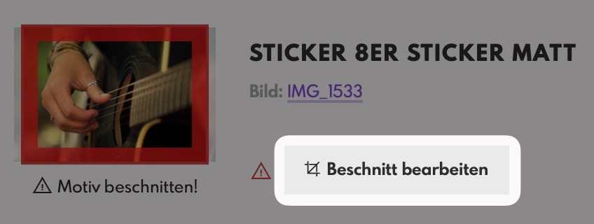 Bitte kontrollieren Sie den Beschnitt der mit markierten Bilder auf Richtigkeit